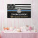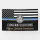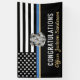 This design features a police force flag with black and white stripes, and a thin blue line stripe as well. Customise with the name of the retiring or graduating law enforcement officer, sheriff, captain, or chief. A great way to say congratulations to the new retiree or graduate for their retirement or graduation from police academy.