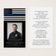 Honor a brave and dedicated police officer with this elegant memorial prayer card featuring a dignified Thin Blue Line flag design and a personalized photo tribute. The front showcases their picture framed in black and gold with the heartfelt sentiment IN LOVING MEMORY OF NAME, "Born" date and "End of Watch" date. The back includes an editable poem you can change to a custom message, prayer or bible verse. Share as a meaningful keepsake for a police funeral, memorial service or Celebration of Life as a lasting tribute to their service and sacrifice. Its small and portable size of 3.5x2" (wallet-sized) makes it convenient for loved ones to carry it with them as a reminder of your loved one’s life, service and spirit.