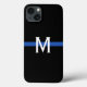 This police thin blue line phone case has a horizontal blue stripe with a monogram initial in white for you to personalise.