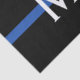 This police thin blue line tissue paper has a horizontal blue stripe on a black background and a monogram initial in white for you to personalise.