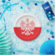 Polish white eagle with a gold crown, the coat of arms of Poland, outlined in red. In Poland, the coat of arms is called White Eagle or Orzel Bialy. Great for that special Polish patriot.