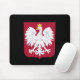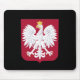 The coat of arms of Poland is a white, crowned eagle with a golden beak and talons, on a red background.