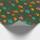 Polish Folk Flowers Wycinanki Green Wrapping Paper