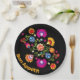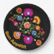 Unique folklore composition with pink and yellow flowers inspired by folk art Wycinanki from Lowicz. Cute as a gift for folk loving person. Paper Plate with polish folklore, customisable text.
