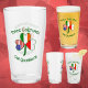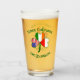 Shamrock, on a drinking glass, featuring the flags of Poland, Ireland and United States of America (USA). A different flag is found in each leaf. It reads THREE CULTURES above the shamrock and ONE YOURNAME below. The words are dark green, Celtic style, circular letters. Add your name in the correct place for personalised drinking glass. For a customised gift, add someone else's name.