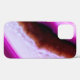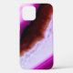 A colourful backlit gemstone photograph of a purple agate with a line of white quartz running through it. A stylish phone case.
