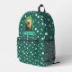 Frame a vertical photo of your pet in a classic arch frame in teal with a banner for his or her name. Background is white polka dots on teal.