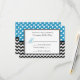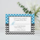 Stylish wedding reply cards with a white polka dot pattern over blue on the top and a black & white chevron zigzag pattern on the bottom.