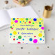 Cheerful polka dot circles in party colours, including yellow, green, turquoise, blue, red, orange and pink, are the theme of this Quinceañera guest book. Customise the text for your special occasion.