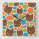 Colourful Polka Dot Cats Pattern in Brown Orange Cyan Blue & Olive Green.