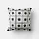 Polka Dot Circle Black and White Check Pattern Throw Pillow designed by Nisha Prabhu CuteHomeGifts. Black and white themed pillow featuring black polka dot circle with horizontal and vertical stripes of black colour placed over a white background.