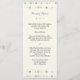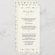 Varying size dots in soft turquoise, green and peach colours make columns against a cream background to frame menu text on this versatile rack card menu to fit any special occasion. Available with matching products.