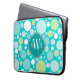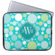 © 2012 Socialite Designs. Protect your 14.5" or smaller laptop from everyday use with this trendy blue, green and white polka-dot pattern neoprene sleeve. Our elegant teal banner is a perfect place to add your monogram, name or initials. Make it uniquely yours by customising the background colour. To customise the turquoise background colour, press the "Customise it" button and choose "Edit - Background". Please note that the sleeve works best with 14.5" laptops or smaller. A 15" laptop will have a very tight fit.