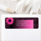 Retro wedding fun with a bright pink polka dot daisy flower on a polka dot ribbon on a fade to black pink background.