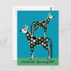 Two stylised deer with polka dots on their bodies are depicted, one standing over the other against a teal background with a green strip at the bottom which might represent the ground. The upper deer stands on the lower one, creating a somewhat surrealistic and whimsical composition.