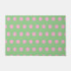 Sage green background with pastel pink polka dots...