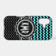 Elegant combination of polka dots and zigzag chevrons in chic aqua, black and white. Customisable background colour.