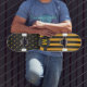 Polka Dot Golden Yellow and Black Stripes Skateboard
