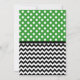 Cute and stylish baby shower invitations with white polka dots over green on the top and a black & white chevron zigzag pattern on the bottom. Personalise with the Mummy-to-be's shower details and choose your paper type too!