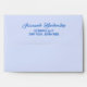 This envelope interior has blue polka dots to match the pastel blue outside. The back flap features template return address great for any mass mailing. Fill in the template fields with your information, remove the text or click customise to select a font style, size, and colour you like. You can also select a different outside colour.