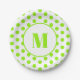 Polka Dot Monogram Initial Lime Green on White Paper Plate