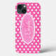 Modern girls bright soft pink polka dot patterned graphic case. Perfect for personalising your device or as a special Christmas or birthday gift for a woman or teen girl. Personalise with your name and initial. This example reads: Layla M. Design by Sarah Trett.