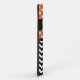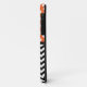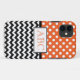 Stylish iPhone 5 Casemate Barely There Case designed with white polka dots over orange on the top, a black & white chevron zigzag pattern on the bottom, and personalised with your initials in the middle.
