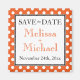Stylish custom Save the Date magnet for announcing your wedding, designed with white polka dots over orange. No minimum order!