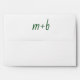 Polka dot pattern gold, blush pink wedding envelope. The outside of the envelope is of white colour with your initials or monogram in green while there is a polka dot pattern on the inside.