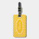 Modern girls bright warm yellow pink polka dot patterned graphic luggage tag. Perfect for holidays and trips. Add your name and initial to front of tag and customise the reverse of this tag with your name and address details. Designed exclusively by Sarah Trett for www.mylittleeden.com on zazzle.