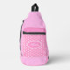 Modern girls bright pink polka dot and name cross body bag. Personalise with your own name and initial. This example reads: Monica T. Design by Sarah Trett for www.mylittleeden.com