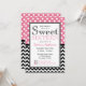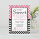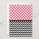 Stylish sweet sixteen birthday invitations with white polka dots over pink on the top half and a black & white chevron zigzag pattern on the bottom half. Personalise with the party details and choose your paper type too!