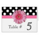 Polka Dot & Pink Gerber Daisy Wedding Table Number