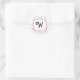 A monogram sticker featuring a background of small black polka dots over white. Personalise with your initial inside pink frame. Look for matching items at Jill's Paperie.