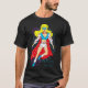 I give wanted to give this a 4 instead of a 5 because these Basic DARK T0shirts run unexpectedly SLIM or Narrow. Which is great if you do not have a potbelly, but I have a paunch. It isn't the shirt's fault that I've got a beer belly. The design and shirt itself is a quality cotton shirt. The color is more of a deep purple, but still a very pretty color. The Basic DARK T-shirts run a bit SLIMMER than the Basic Ts. The neck is a fraction narrower (or seems to be narrower) also. I'm a paunchy middle-aged woman and my neck is 12 inches (31cm) thick and the neckline fell about the same as in the photo of the man, and I had the desire to tug it a bit. So if you're a thick necked man or like loose shirts, be aware these are slimmer shirts. Once I get rid of my lockdown paunch it'll look great. The shirt washed well in cold water with no apparent bleeding. We don't have a dryer, so it hung dry. Did not shrink. Love the colors and the design. The design looks smaller on my shirt than it does on the model on-line. But still, it looks good on the shirt. The printing looks as it does on the model, just the size seems fractionally smaller. Washed garment in cold water, hung dry and design appeared unaffected.