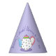 Party hat design features an original marker illustration of a pastel polka dot teapot. Just personalise with your bridal or baby shower information.
