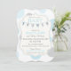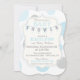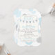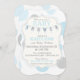 Bold baby blue and grey polka-dot print with baby shower bunting banner modern baby shower invitation card design.