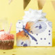 Cute colourful butterflies and blue polka dots seamless pattern over white background. Customisable wrapping paper template