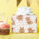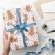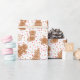 The pattern dances across the paper, showcasing a delightful array of elements in coordinating colours. Brown snowflakes twirl gracefully, capturing the intricate beauty of winter's frozen wonders. Charming gingerbread men, with their smiling faces and sugary details, bring a touch of whimsy to the design. Stately Christmas trees stand tall, adorned with vibrant ornaments and festive lights, exuding the holiday spirit.
