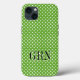 Polka dots Case-Mate Phone Case Apple iPhone 13 barely there. Elegant apple green polkadots pattern design with custom monogram. Personalised phone cover with name initials. Trendy Birthday or Christmas gift idea. Also available for older models and other brands. Customisable colours.