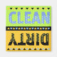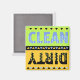 Clean is in sky blue with light blue polka dots on lime background. Dirty is in black with light gold on gold background. This is a digital illustration.
