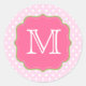 Polka Dots Monogram Pink and Green Classic Round Sticker