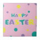 The greeting "Happy Easter" with Polka Dots on a Pastel Pink background.