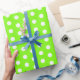 Cheerful bright green background with white polka dots, a fun design for birthday, Easter, graduation, promotion, anniversary, kids' birthday, special occasion, celebration, for family, besties, your dotty friend, co-worker, office party, full moon party, spring equinox celebrations, we're seeing dots! The polka dots are in a staggered repeating pattern. Bright colours bring good cheer and smiles. Green is a colour of creation, growth, nurturing and nature. Happy Day!