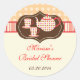Modern and chic custom bridal shower sticker. Features a tea pot and tea cups with polka dots in different colours. Trendy design in bright colours. Use it for party favours or to seal envelopes.