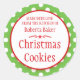 Cute green, white, red polka dot baking stickers, perfect for Christmas cookie exchange parties or for selling your homemade products at farmer's market's and craft fairs around Christmas time. Use these stickers to seal your Christmas presents that you give others or for children's favours to family and friends. Currently reads Made with love from the kitchen of Roberta Baker Christmas Cookies. Fully customisable to personalise with your own name, and product details. Uniquely designed by Sarah Trett.