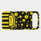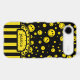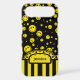 Cool tiny yellow coloured polka dot happy face pattern design on black. Retro stripe flower monogram ribbon, Personalise with your name