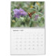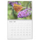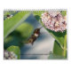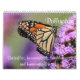 Nature calendar with images of butterflies, ruby-throated hummingbirds, bumblebees, and hummingbird clearwing moths. Butterflies include monarchs, black swallowtail, and eastern tiger swallowtail. The pollinators are all shown feeding on flowers which include purple liatris, pink milkweed, purple butterfly bush, and deep red bee balm.