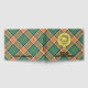 Clan Pollock crest badge surrounded by a strap and buckle over tartan background. Custom front, back and spine text.