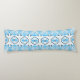 Polyester Body Pillow, 20" x 54", Blue and white colour fabric print pattern design. A beautiful classic creative stylish attractive trendy fashionable Body Pillow design. A Body Pillow is a long pillow, that is designed to be cuddled while sleeping. They are often used by people who sleep on their side, as they can provide support for the entire body, helping to improve spinal alignment and reduce pain.